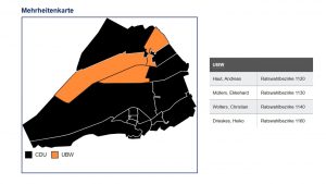 Im letzten Rat hatte die UBW 4 von 38 Sitzen. Jetzt haben wir 4 von 34! Damit hat unser Einfluss und unser politisches Gewicht im Rat zugenommen!