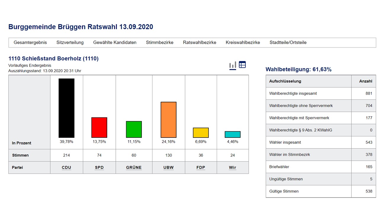 14.09.2020 -Das Ergebnis der Gemeinderatswahl 2020 ist für die UBW ein voller Erfolg!